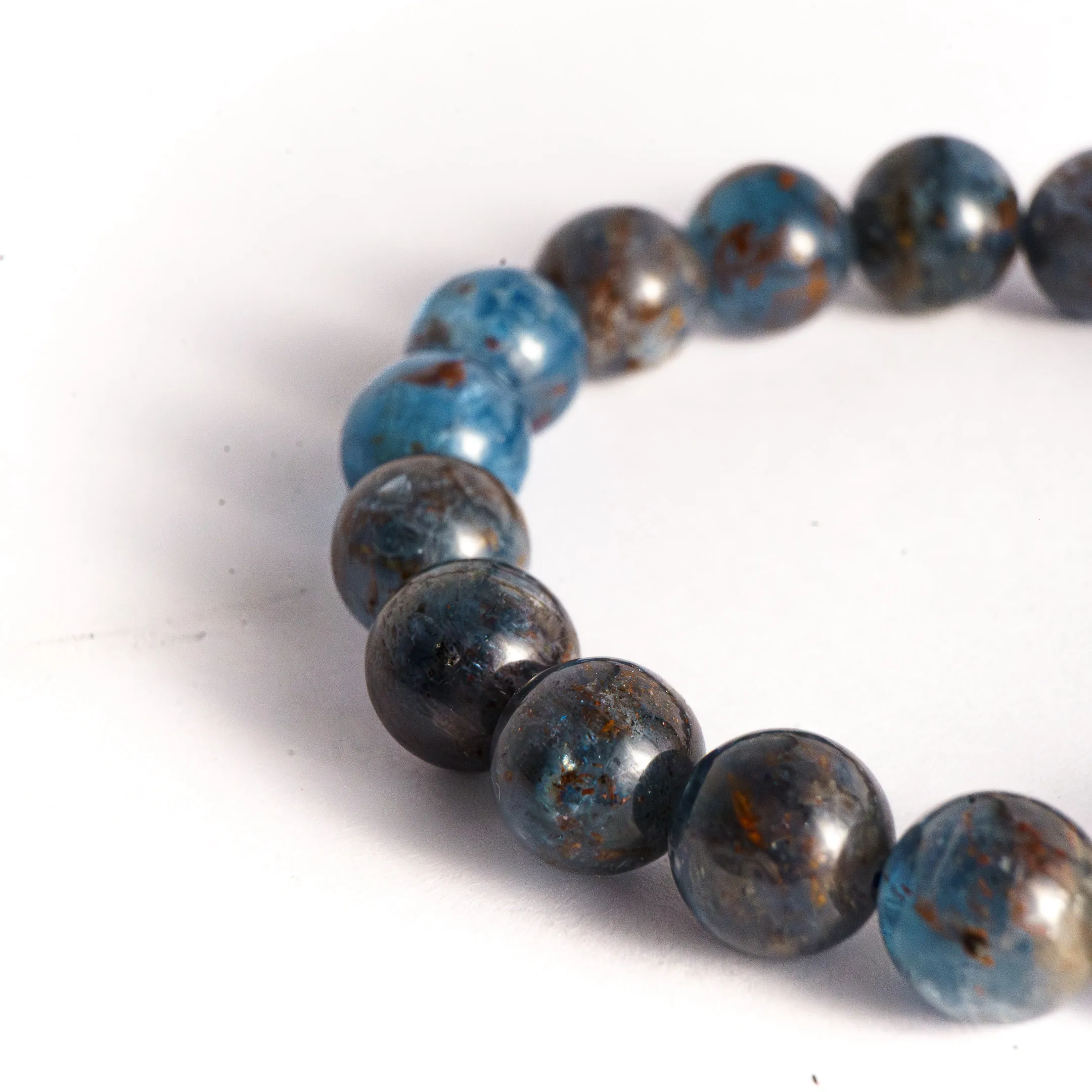Bracelet élastique à mémoire de forme en cyanite en perle 6mm. Taille standard femme.