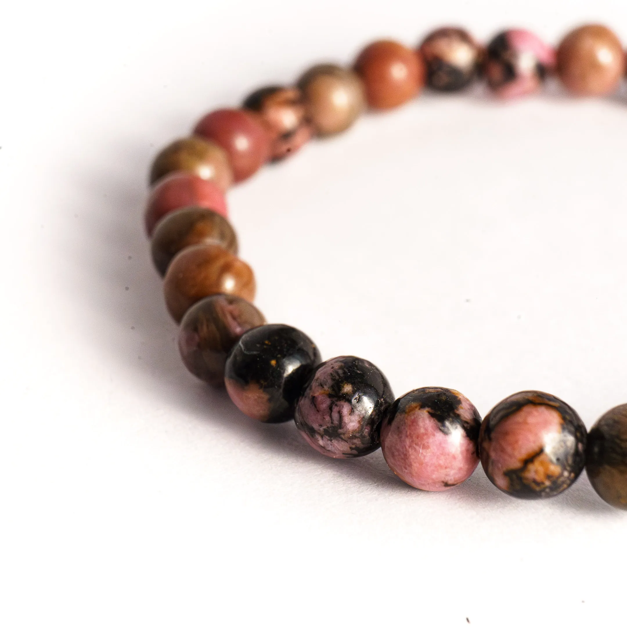 Bracelet en rhodonite vendu à l’unité. Taille standard femme 16/18,5 cm, perles rondes de 6 mm en rhodonite naturelle. Qualité AB.
