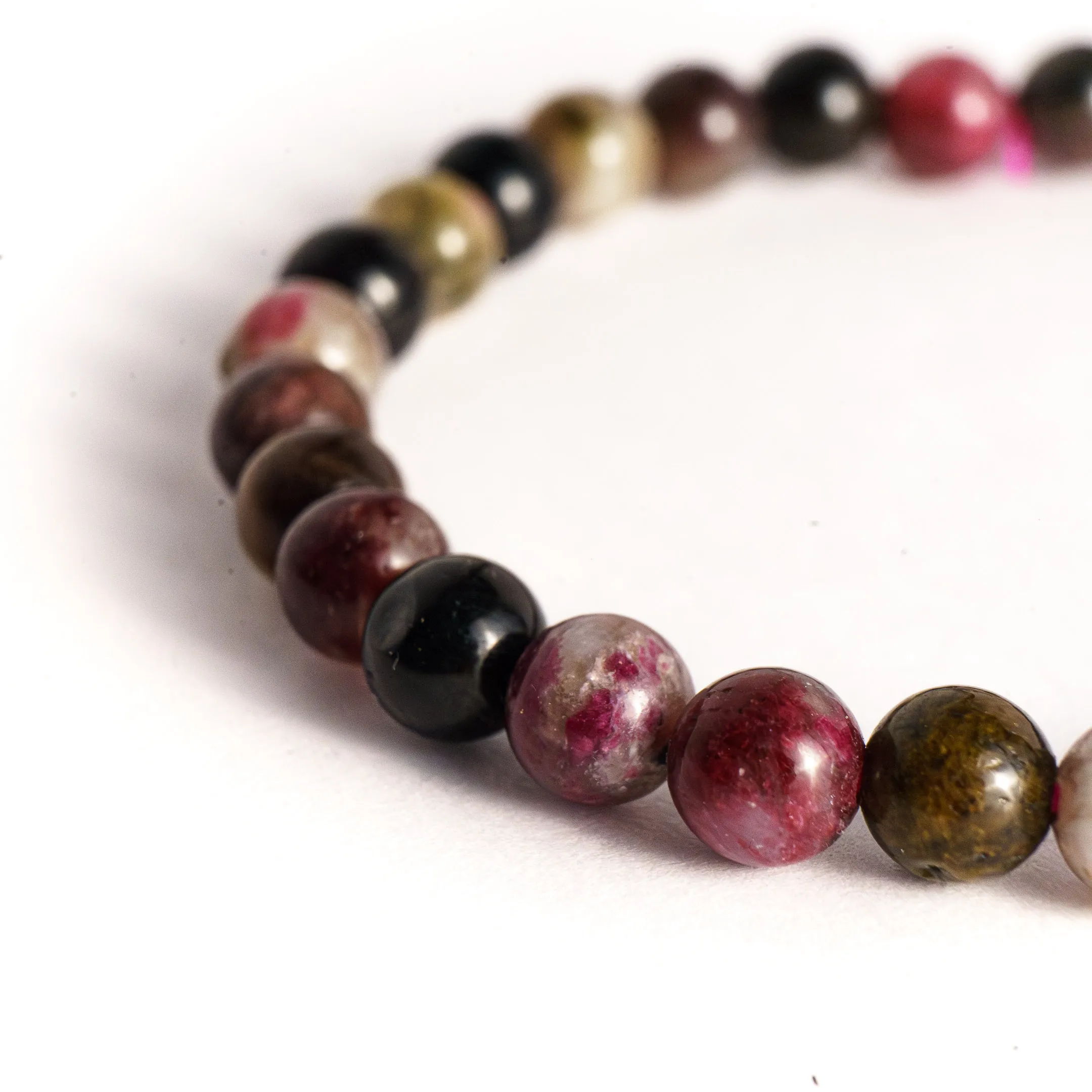 Bracelets en perles de tourmaline naturelle multicolore. Les couleurs peuvent différer d’un bracelet à l’autre.