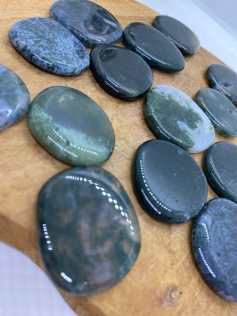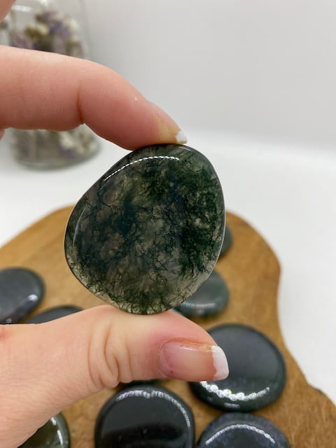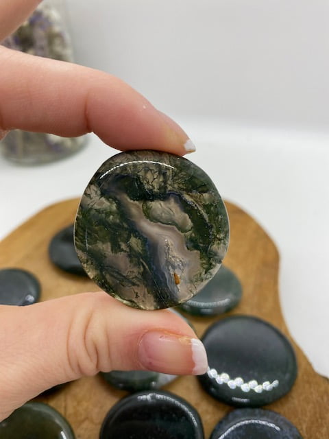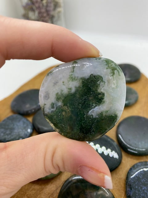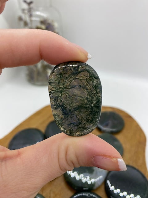 Mini galet plat d’Agate mousse. Vendu à l’unité.
