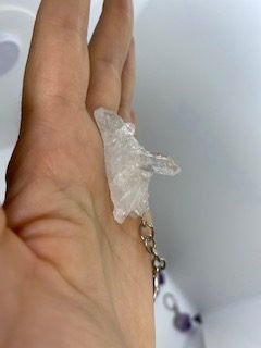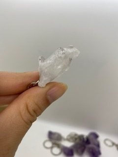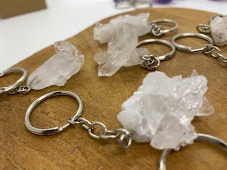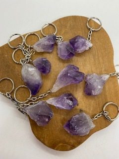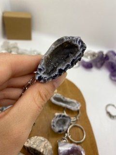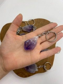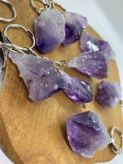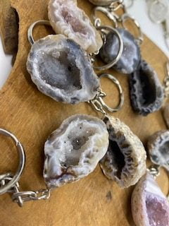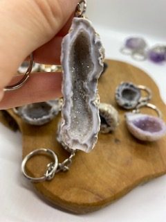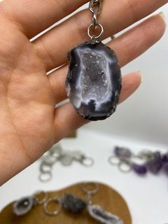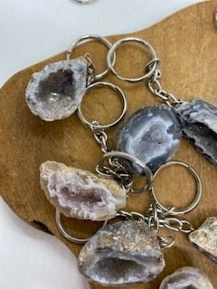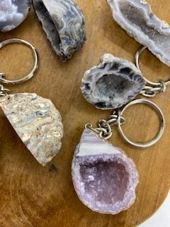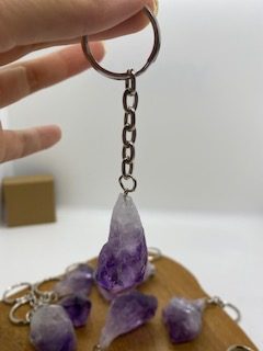 Porte-clefs en pierre naturelles, Améthyste, Agate, Cristal de roche en bouquet.